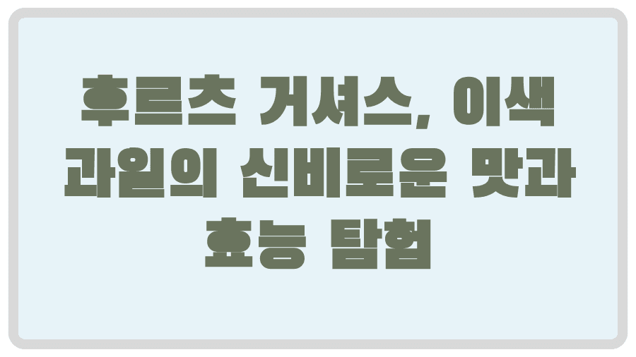 처음 보는 이색 과일, '후르츠 거셔스'라니 이름부터 신비로운 느낌이 들지 않나요? 혹시 마트에서 낯선 과일을 발견하고 "이건 뭐지?" 하고 궁금했던 경험, 누구나 한 번쯤 있을 겁니다. 특히 저처럼 새로운 음식에 대한 호기심이 왕성하고 건강에도 관심이 많은 분이라면 더욱 그렇겠죠. 오늘 여러분의 궁금증을 시원하게 풀어드릴 주제는 바로 '후르츠 거셔스'입니다. 이 신비로운 열대과일이 정확히 무엇인지, 어떤 매력적인 특징을 가지고 있는지, 그리고 우리 몸에는 어떤 이로운 점을 선사하는지 함께 알아볼 예정입니다. 더불어 어떻게 하면 이 특별한 과일을 맛있게 즐길 수 있고, 어디서 구할 수 있는지까지, 후르츠 거셔스에 대한 모든 것을 꼼꼼하게 파헤쳐 보겠습니다. 여러분의 미각과 건강에 새로운 즐거움을 선사할 후르츠 거셔스의 세계로 함께 떠나볼까요?